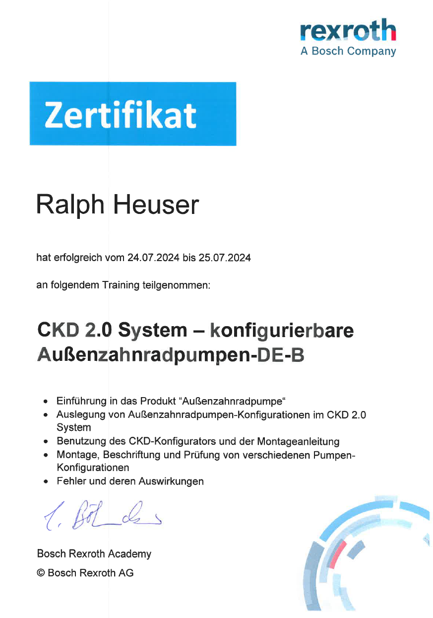 Unsere engagierten Mitarbeiter haben erfolgreich an der Schulung “CKD2.0 System – konfigurierbare Außenzahnradpumpen” teilgenommen.